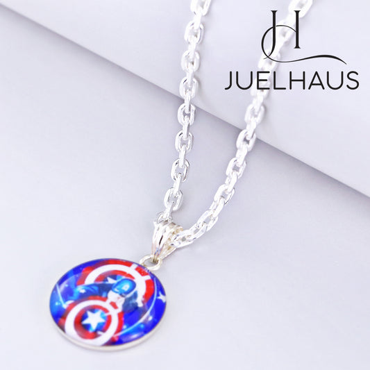 JUELHAUS Pure S990 Silver Necklace with Captain America Image as a Healthy and Strong