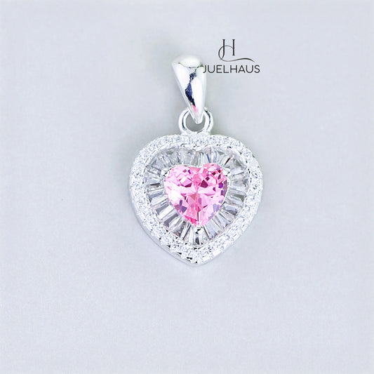 JUELHAUS Pure Silver Pendant Gift for girlfriend S990 for Little Girl Lovely Heart-shaped Pink Stone